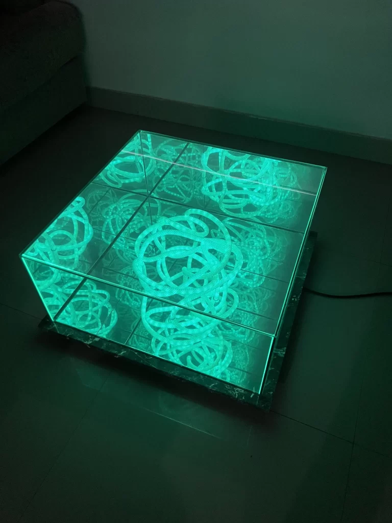 Bem-vindo ao mundo exclusivo das Mesas de Centro Infinity Mirror, onde, assim, o design contemporâneo encontra a tecnologia em uma experiência visual fascinante. Nossas mesas são, portanto, mais do que simples móveis; elas se tornam peças de arte que transformam qualquer ambiente, criando, dessa forma, uma sensação de profundidade e infinito através de um jogo de espelhos e luzes LED.