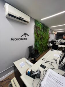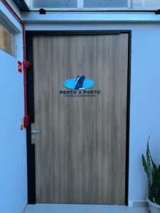 Além disso, a espessura de 3mm permite um detalhamento superior em fontes menores ou mais complexas. Este logotipo em acrílico 3mm foi fixado estrategicamente para criar um relevo discreto, ideal para áreas internas onde o cliente interage de perto com a decoração. Portanto, o projeto une a modernidade do material com a funcionalidade necessária para um espaço de atendimento ao público.