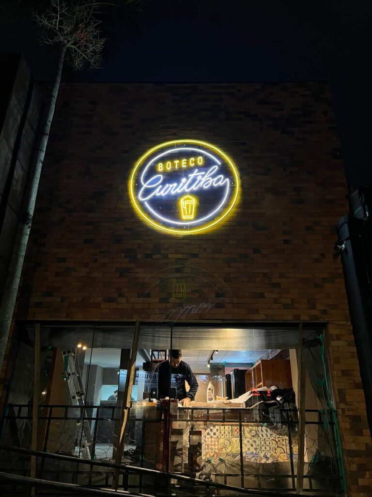 Instalar iluminação em áreas externas exige materiais que suportem as variações climáticas sem perder a performance. Recentemente, a PHF Art finalizou a instalação do neon para fachada do Boteco Curitiba, utilizando tecnologia 100% impermeável. Este projeto destaca-se pela segurança elétrica e pela durabilidade das cores, mesmo sob exposição direta à chuva e ao sol. Nossa equipe selecionou componentes com vedação especial para evitar infiltrações e curtos-circuitos.