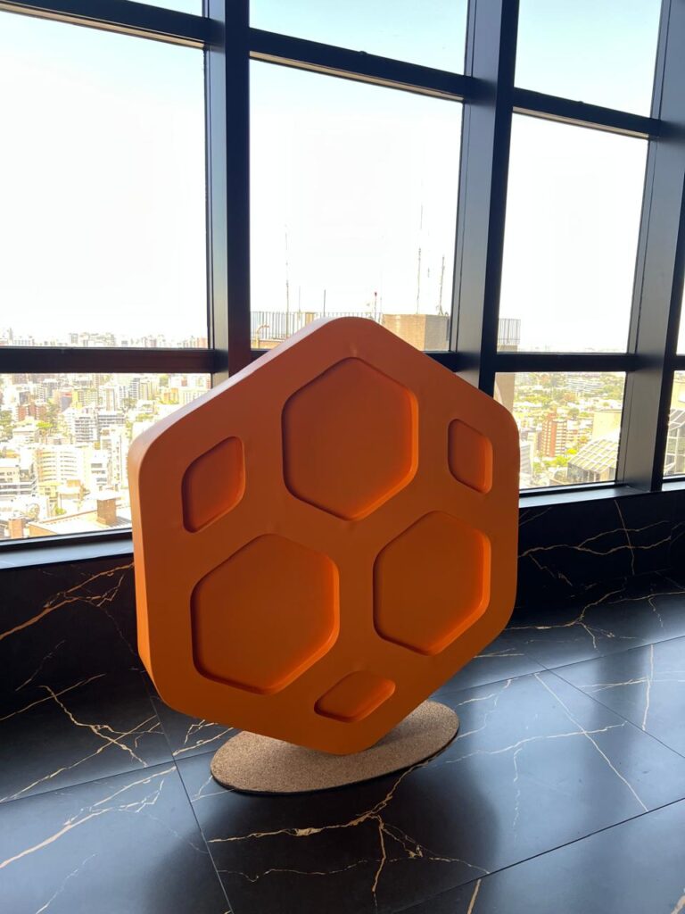 Nossa fabricação de sinalização autoportante envolve um rigoroso processo de engenharia. No totem em formato de colmeia, planejamos cada dobra e recorte para manter a integridade estrutural, ocultando emendas e garantindo uma superfície lisa. A PHF Art utiliza tecnologia CNC para assegurar que o corte respeite as proporções do design original milimetricamente. Além disso, projetamos a base do totem para oferecer estabilidade máxima em diferentes tipos de piso.